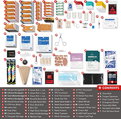 ব্যাপক উপাদান: ক্ষত যত্ন: ব্যান্ডেজ, গজ প্যাড, আঠালো টেপ, এন্টিসেপটিক ওয়াইপস